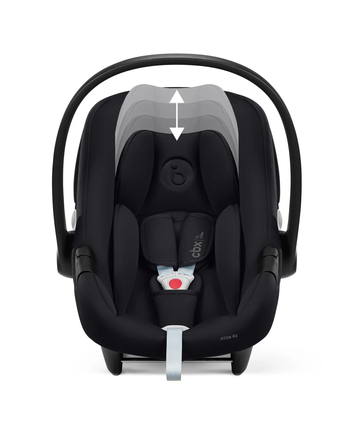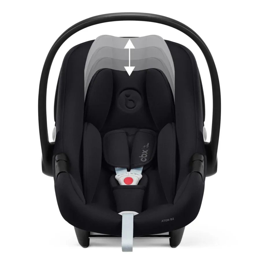 Presenting the Aton B2 i-Size infant car seat. Developed according to the latest safety standards, it features Linear Side impact Protection which protects your baby while traveling. A removable newborn inlay and height-adjustable headrest ensure maximum comfort during your child’s first two years. At 3.8 kg, the Aton B2 i-Size isn’t only lightweight, but easy to handle and is compatible with CYBEX strollers and other select brands. The foldable USF50+ XXL sun canopy of the Aton B2 i-Size protects against the sun and wind. With this car seat you and your baby can get from A to B safely from day one.